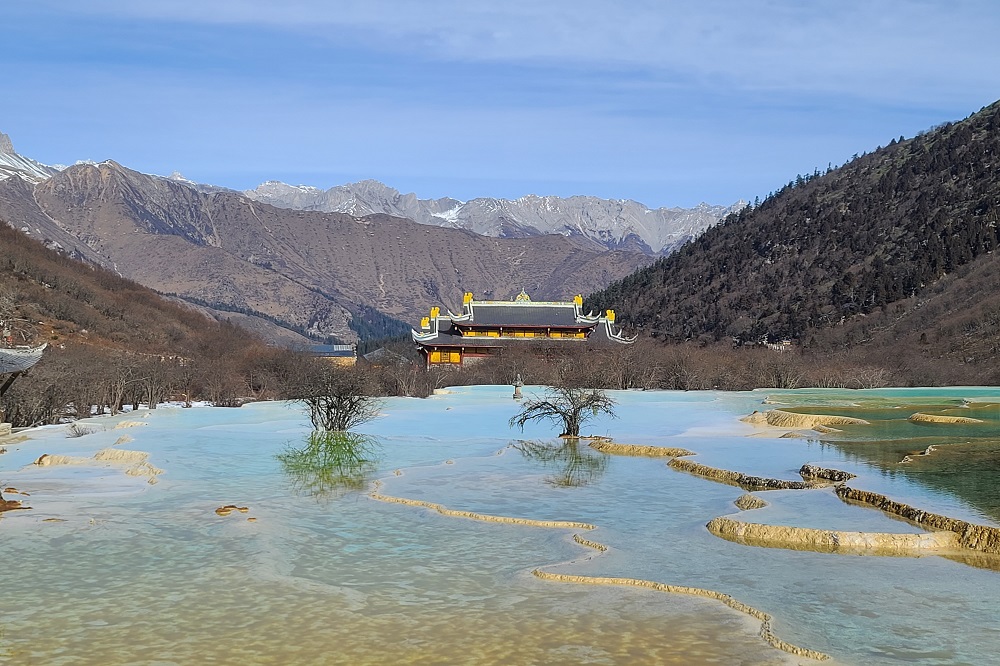 在以“彩池、瀑布、滩流、雪山、古寺”五绝闻名于世的黄龙景区,层林尽染的山野,奔腾不息的瀑布,令人回味的美食,让大家仿佛置身于童话世界。