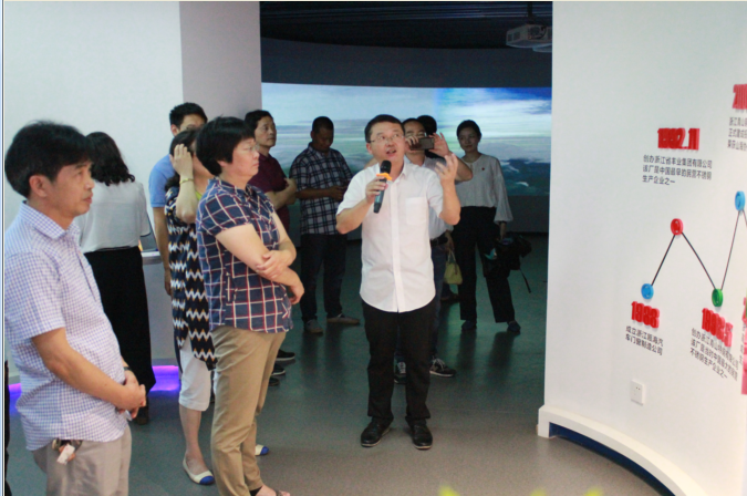 在刘海的带领下,廖宝云一行来到了党群中心参观。刘海对党群中心命名的含义进行了讲解,并通过展板和宣传片等对J9国际集团的发展史、发展现状、J9国际集团文化和瑞浦的党建工作作了细致汇报。
