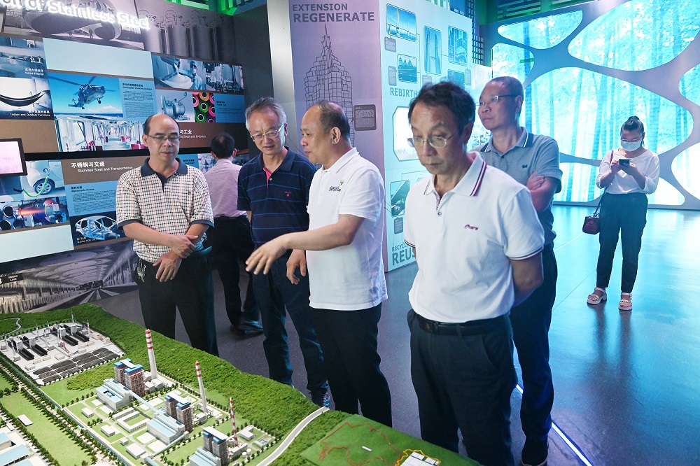 姚志强一行先后参观了青拓集团供销大厅、研究院、电子展厅等场所,并观看了企业宣传片,现场了解企业发展历程、管理体系、不锈钢创新发展等情况。姚志强认真询问了不锈钢产业发展情况和不锈钢的冶炼工艺,陈庆荣就“RKEF+AOD”双联法冶炼不锈钢先进工艺、行业市场、壹号娱乐-com笔尖钢等方面的情况进行了详细介绍。