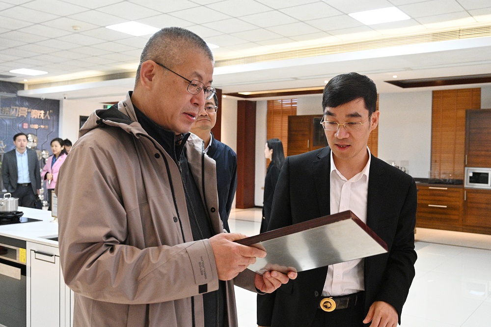张庆昉一行先后参观了集团供销大厅、研究院、家具展厅、电子展厅,并观看企业宣传片,对企业发展历程、全球规划布局、不锈钢工艺创新研发等方面进行了全面了解。