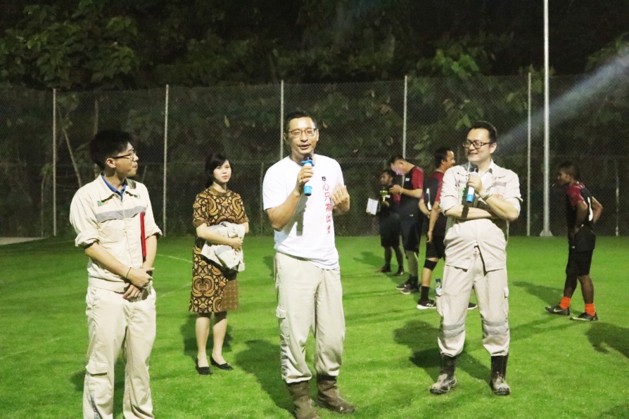 9月3日20时30分,在领导的大力支持和全体参赛人员、裁判员、工作人员的共同努力下,印尼纬达贝园区第一届员工趣味运动会圆满落幕,并在足球决赛结束后的热烈气氛中举行了颁奖典礼。永青集团有限公司董事长项炳和、副总裁何小振,以及各部门领导出席了颁奖典礼。