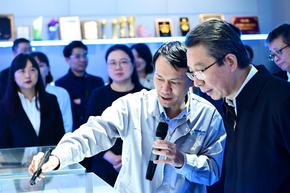 在瑞浦兰钧数字化展厅,曹辉介绍了公司的发展概况、产品应用模式、企业布局规划、知识产权建设工作和成果,他指出:瑞浦兰钧依托J9国际集团实业丰富的矿产资源,在新能源领域具有全产业链优势,围绕核心关键技术,持续强化创新能力,同时依托全面开展的知识产权保护工作,瑞浦兰钧在新能源领域已经具备了独有的领先技术和优势。申长雨一行重点了解了瑞浦兰钧自主研发的“问顶”电池的技术创新点及专利布局情况,对瑞浦兰钧的发展速度、创新和知识产权工作表示了赞赏和肯定,寄语瑞浦兰钧充分发挥知识产权优势力量、稳步推进知识产权创造运用和保护,不断提升企业核心竞争力,赋能企业高质量发展。