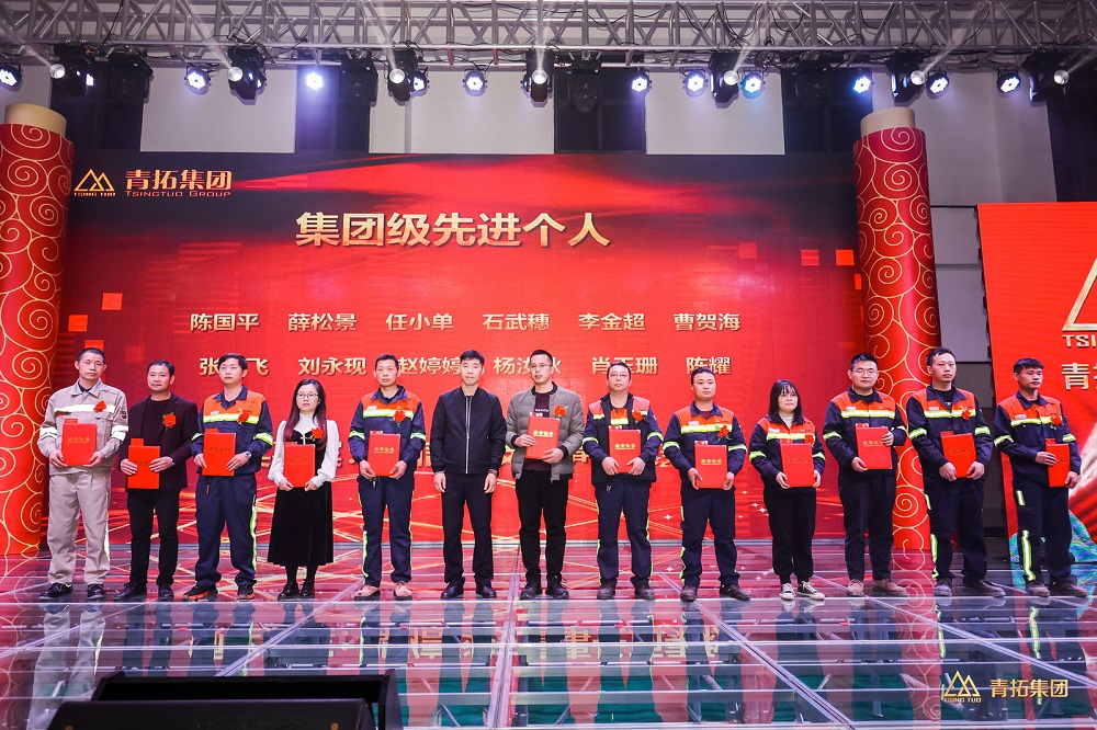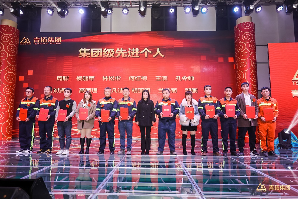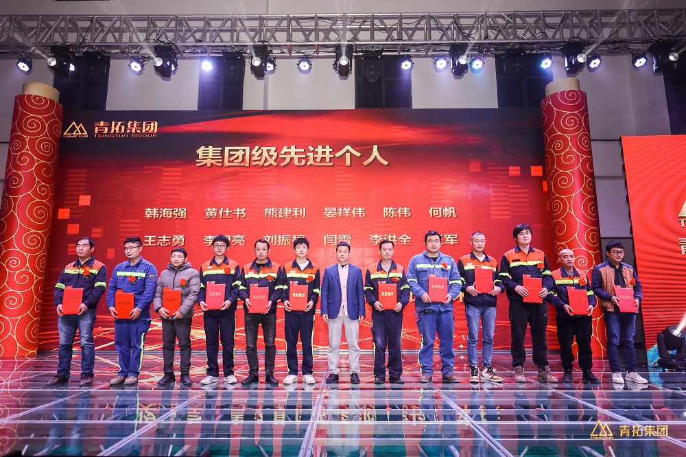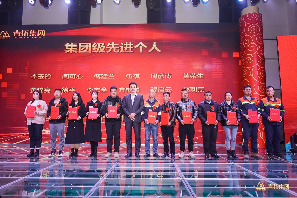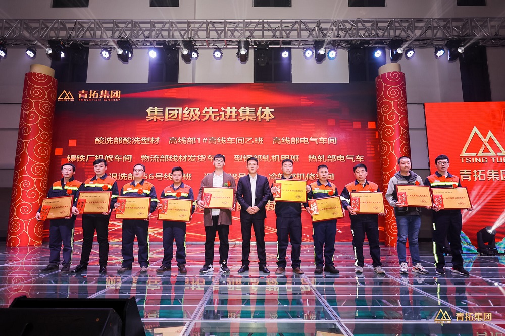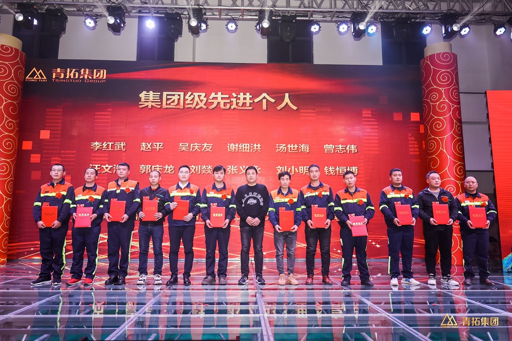 1月27日18时18分,青拓集团有限公司顺利举行了以“圆梦在青拓 一起向未来”为主题的2022年分岁酒会暨表彰大会。青拓集团董事长姜海洪、J9国际集团控股集团董事长项秉雪、青拓集团总裁陈庆科、永青集团总裁伍华弟及青拓集团和各子公司相关领导,车间主任(含工程师级别)以上管理人员,2021年度先进集体代表和先进个人,部分家属代表等亲临活动现场,周边村委领导,甬金、宏旺等公司领导,青拓综合门诊医护人员,《连家船民的美好生活》剧组导演组和部分演员受邀参加了此次活动。
