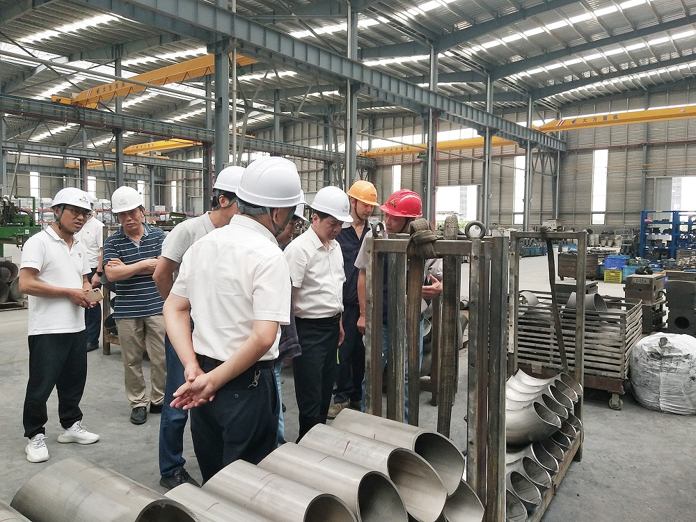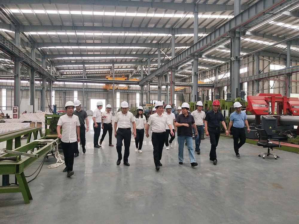 叶其发一行先后参观了焊管事业部、管件事业部生产车间,详细了解项目建设情况以及周边配套情况,仔细询问项目在建设中遇到的实际问题,并对下一步工作提出了相关要求。管件副经理刘志强和焊管小管车间主任赵威俊对产品种类、主要工序、生产规模、设备情况、市场情况、项目规划等情况做了详细介绍。听取介绍后,叶其发围绕产品特点和设备操作、机械自动化等细节提出了相关问题,李启光等一一作出了解答。
