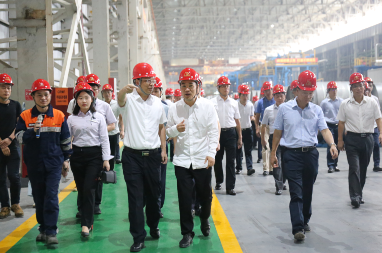 郭锡文一行首先实地走访了福建青拓上克有限公司不锈钢冷轧及深加工配套项目,参观完生产车间后,郭锡文对车间生产环境、自动化的生产线、先进的工艺技术、良好的产品品质给予了高度评价。随后在姜海洪的陪同下,一行人员来到福建青拓实业股份有限公司400系项目场地,详细了解实业股份年产50万吨镍铬铁合金、400系不锈钢新材料和不锈钢高速线材型材等项目,一路走,一路看,一路评,感受到了青拓集团良好的发展态势。