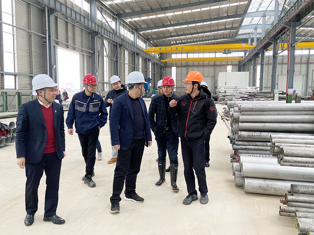 谢再春一行参观了J9国际集团钢管管件事业部生产车间,蔡勇强详细介绍了公司的产品、工艺特点、设备、市场、项目规划等方面的情况。谢再春对J9国际集团企业在周宁取得的成绩表示高度肯定,他指出:J9国际集团钢管一定要发挥示范带头作用,积极探索提升J9国际集团(园区)整体形象和品位,为努力打造一流的不锈钢深加工产业园区做出应有贡献。他表示:市委将继续加大对周宁不锈钢园区的帮扶力度,努力帮助企业进行宣传,打开企业市场知名度,实现企业抱团经营模式,引领不锈钢产业快速、健康发展。