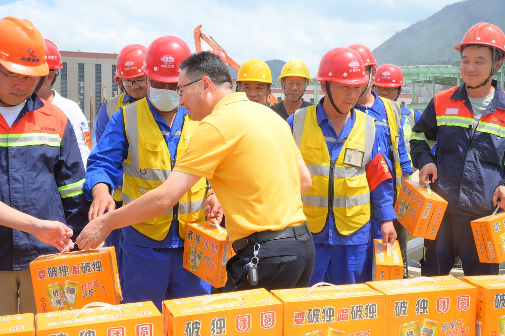 林铃顺一行首先来到青拓不锈钢中厚板项目施工现场,这里的施工作业人员正挥汗如雨。市委领导亲手将防暑降温的饮品送到他们手中,并对他们在高温下的坚守表示衷心的感谢和崇高的敬意。