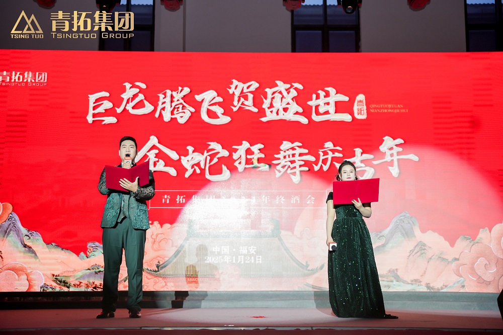 1月24日,青拓集团有限公司举行了“巨龙腾飞贺盛世 金蛇狂舞庆吉年”2024年终酒会。青拓集团董事长姜海洪、副董事长项秉雪、总裁陈庆科,副总裁冯绍德、项炳庆、周玉泉及集团直属各部门、各子公司领导、管理人员等600余人出席,青拓集团总裁助理翁辉主持活动。