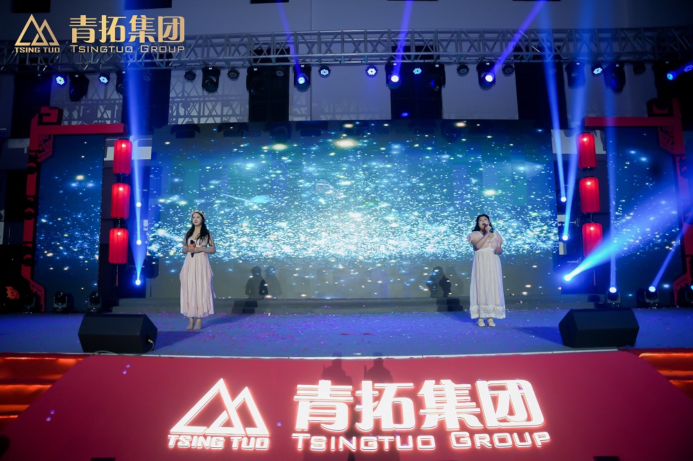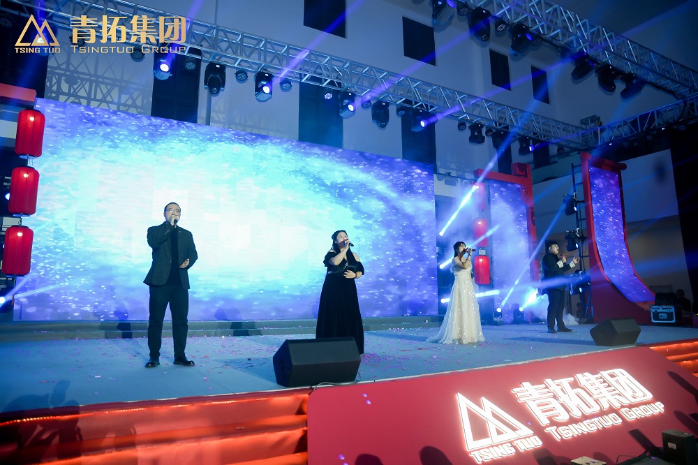 最后,在《相亲相爱》的歌声中,全体演员走上舞台共同欢唱,用歌声传达出青拓大家庭的温暖和谐。