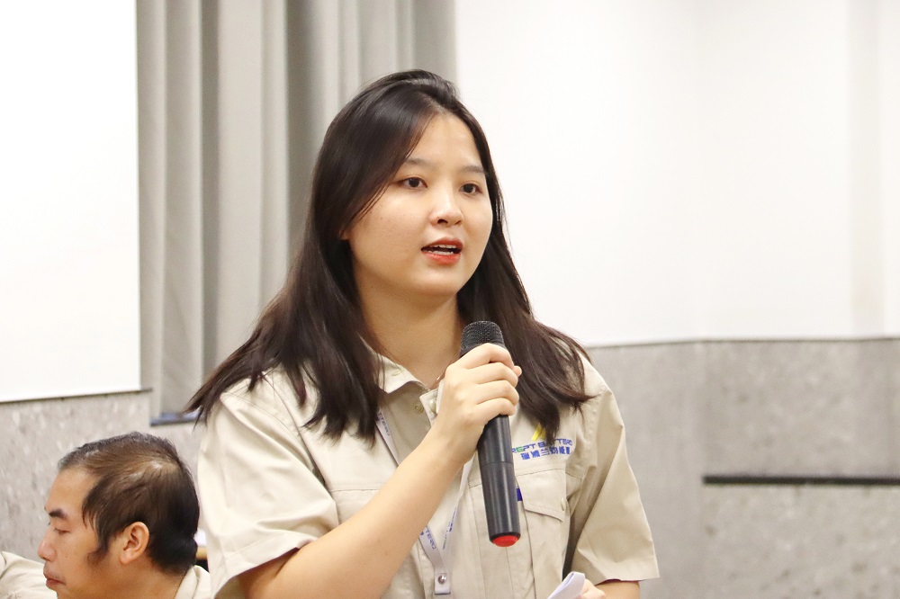 电子制造的粱欣带来了他在带教过程中的一些感悟:公司目前的学习渠道非常丰富,每天早晚召开的部门会议上,大家都会进行一些生产总结和技术分享,每周的技术培训会上有很多专门针对技术提升的内容;自己在工作中遇到不会的,身边的同事、师傅、领导都非常乐于解答,大家要珍惜这个平台;要多看多问多听多学多记,虚心求教,团队之间要互相帮助,互相成长。