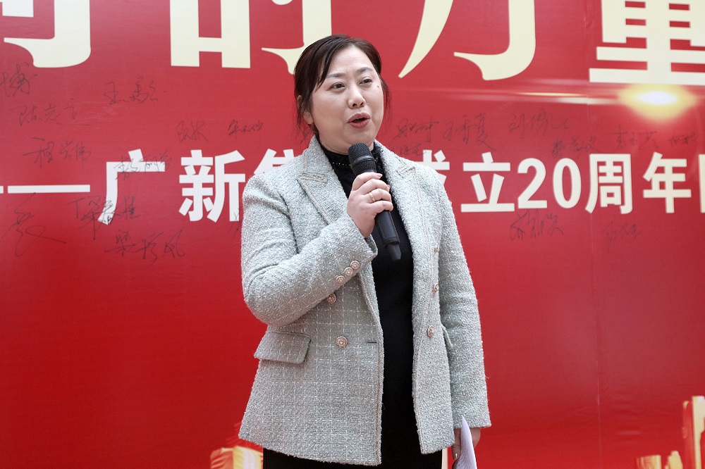 公司党委副书记、工会主席王大庆与大家分享了她在广新集团的成长历程和感受。她说到:二十年来,广新发生了翻天覆地的变化,取得了一个又一个辉煌的成就,但一直不变的是我们的初心、坚持和信念。
