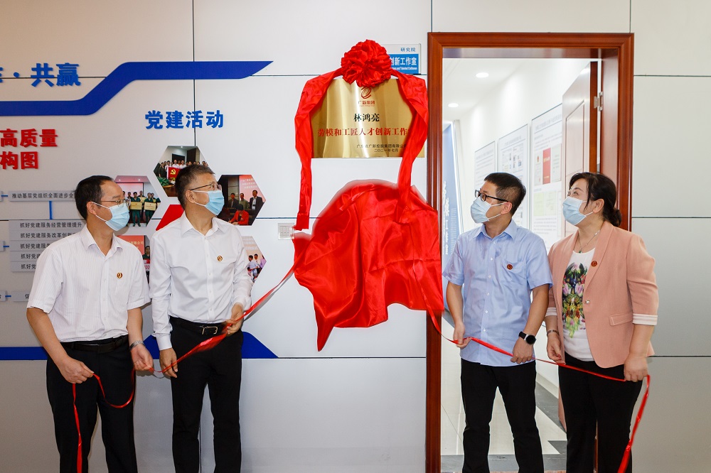 7月30日,广新集团“林鸿亮劳模和工匠人才创新工作室”揭牌仪式在广东广青金属科技有限公司研发楼举行,广东省广新控股集团有限公司党委副书记、总经理白明韶,党委副书记、工会主席黄家合为“林鸿亮劳模和工匠人才创新工作室”挂牌揭幕。