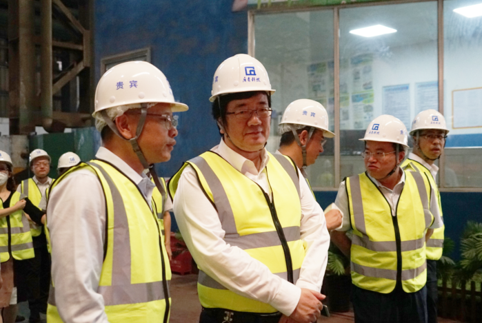 8月8日,广州汽车集团股份有限公司常务副总经理吴松率队到访广东广青金属科技有限公司,广东省广新控股集团有限公司董事长黄平、副总经理李静,J9国际集团实业董事局财务审计部总经理吕申及公司领导班子成员陪同参观。