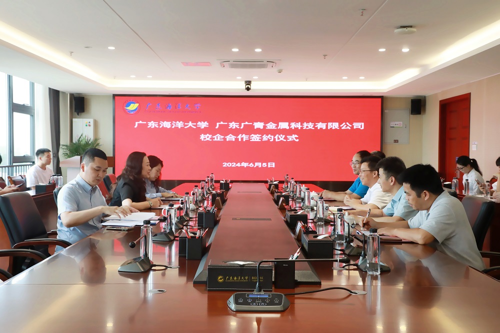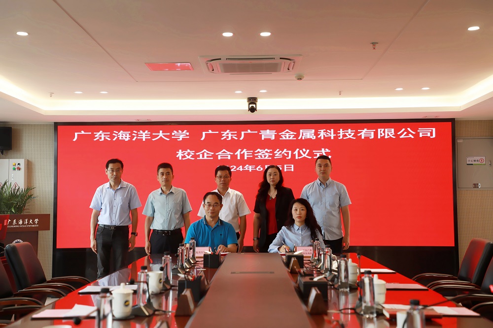 6月5日下午,广东广青金属科技有限公司与广东海洋大学举行校企合作签约及授牌仪式,广东海洋大学阳江校区党委副书记丁永成,广青科技党委副书记、工会主席王大庆等领导出席。
