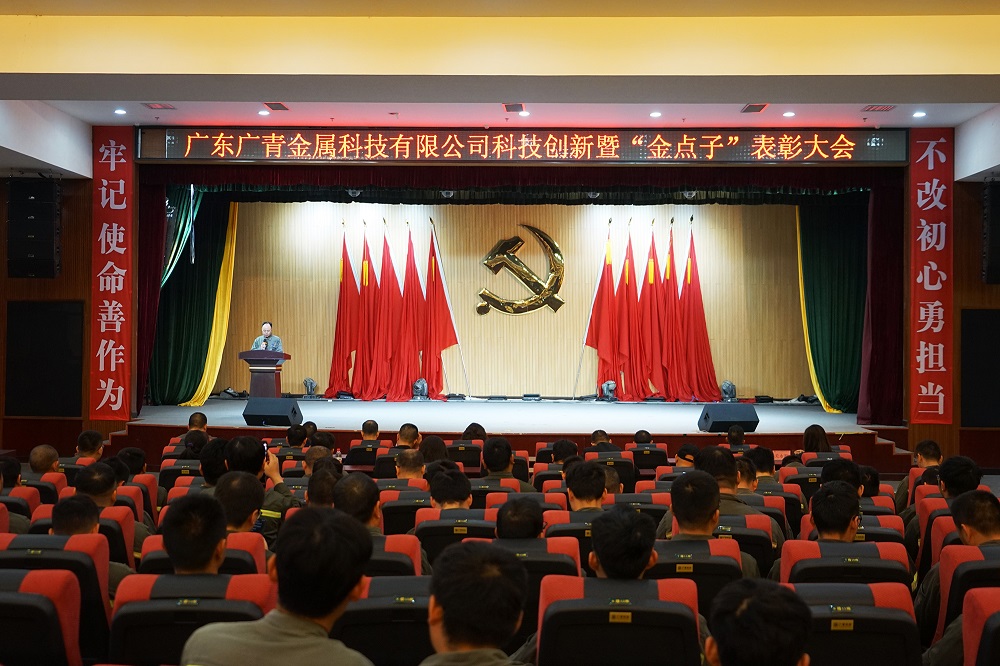 1月6日,广东广青金属科技有限公司召开了科技创新暨“金点子”颁奖大会。公司领导、各部门(厂)负责人、获奖者以及员工代表共100多人参加了会议。
