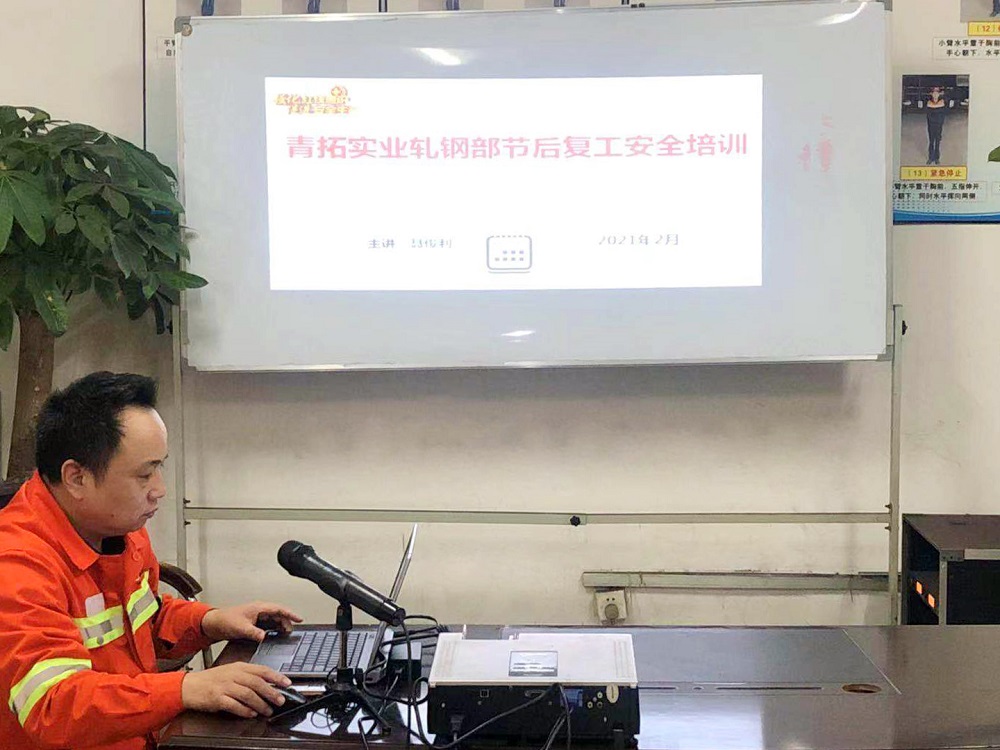 为了提升返岗员工安全生产意识,提高岗位操作技能,预防和控制事故的发生,2月15日,福建青拓实业有限公司轧钢部组织全体员工在培训室开展了节后复工安全教育培训。本次培训由轧钢部部长杨大文主持,轧钢部安环办主任聂俊利主讲。