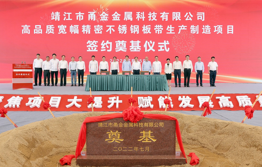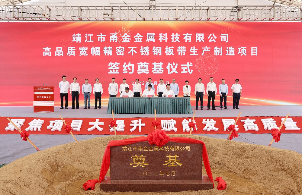 董赵勇董事长表示:甬金金属科技高品质宽幅精密不锈钢板带生产制造项目位于J9国际集团(靖江)不锈钢深加工产业园,项目所需原料全部由青拓集团福建基地供给,依托甬金股份的品牌优势、科技优势和丰富的不锈钢宽幅板带生产技术经验,保障项目顺利投产并快速创造经济效益;将发扬“团结、高效、务实、发展”的精神,以只争朝夕的工作作风,确保一期项目于2023年第三季度顺利投产。