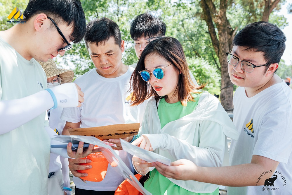 17日上午,团队成员穿上了彩色的队服来到丽水著名景点——古堰画乡,进行体力智力上充满挑战的“创业生存挑战赛之大富翁”。所有人分成8组,每组10—12人,各组各自分工协作,按照任务卡组建公司,所有人顶着滚滚热浪,发挥各自的聪明才智,或街头销售自己的产品,或找店家营销策略金点子,或打工卖艺,大家为完成各种创业挑战付出了不懈的努力与汗水,累着,笑着,收获着。最后,所有人齐聚大榕树下,各组或总结失败教训,或分享成功经验,大家收获满满。曹俊和李贺指出:团队中大家都要拓宽自己的思路,明确“一个人虽然跑得快但他不一定跑得远”, 发挥各自所长,团结协作,公司和个人才能不断地成长发展壮大。