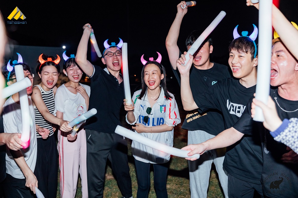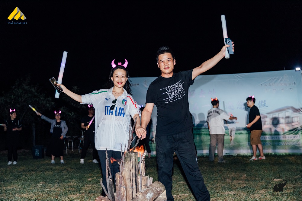 20时,篝火晚会正式开始。大家齐聚草坪,线材销售部总经理曹俊和棒材销售部总经理李贺手握火把,点燃象征红火未来的熊熊篝火。随后,教练带领大家围成一圈做游戏。在游戏过程中,大家充分享受了团队合作的乐趣。一个接一个的团建游戏将气氛推向了高潮,大家在感动与欢乐中意犹未尽。