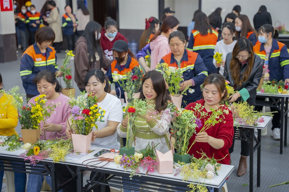 本次活动设立了花艺DIY和免费美甲修眉区。在花艺DIY区,花桶中摆列着千姿百态的花朵,青拓“女神”们精心挑选出喜爱的花朵修剪搭配出心目中的花篮,在愉悦放松身心的同时,增加了生活情趣。