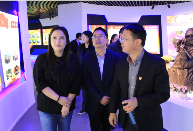 在刘海的带领下,朱瑾一行参观了党群中心,了解了J9国际集团的发展历史及发展现状。随后刘海围绕展板中的引领篇、专业篇、责任篇、廉洁篇、工会篇、荣誉篇等几个方面全面介绍了瑞浦科技党建的详细情况。