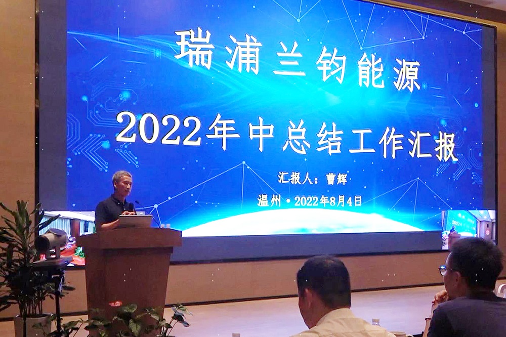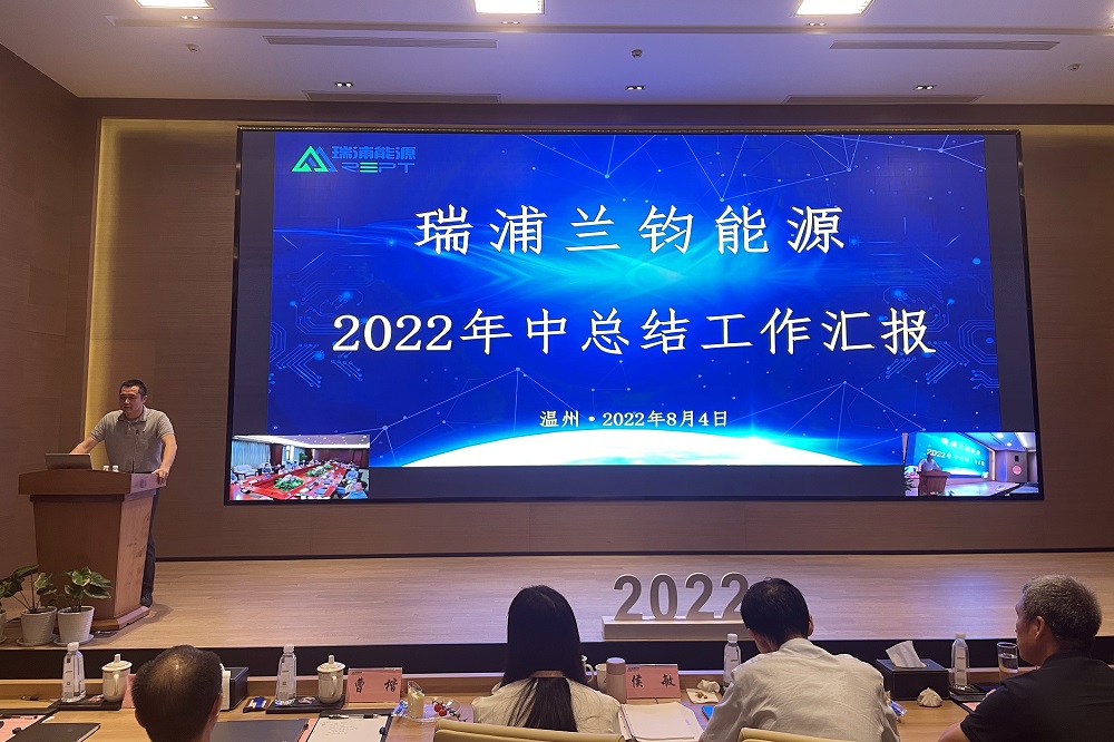 为回顾公司2022年上半年工作情况,对公司、各部门年中经营管理工作存在的问题进行分析总结,并对下半年各项工作做出针对性部署,确保全年任务目标的圆满完成,8月4日,瑞浦兰钧能源股份有限公司召开了2022年中工作总结大会,上海研发中心与温州制造中心视频会议同步进行。永青股份董事长胡晓东、副总裁冯挺,瑞浦兰钧能源董事长曹辉、执行董事吴艳军等公司中高层管理人员、部分楼层主管代表参加本次会议。