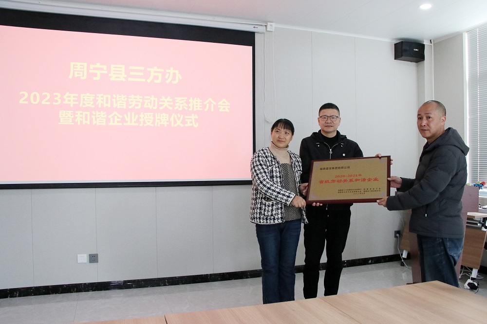 近日,福建省人力资源和社会保障厅、省总工会、省企业与企业家联合会、省工商业联合会四部门联合公布了省级劳动关系和谐企业的评审认定结果,盟信公司在全省多家单位中脱颖而出,荣获“福建省劳动关系和谐企业”称号。这也是周宁县获此殊荣的第二家企业。