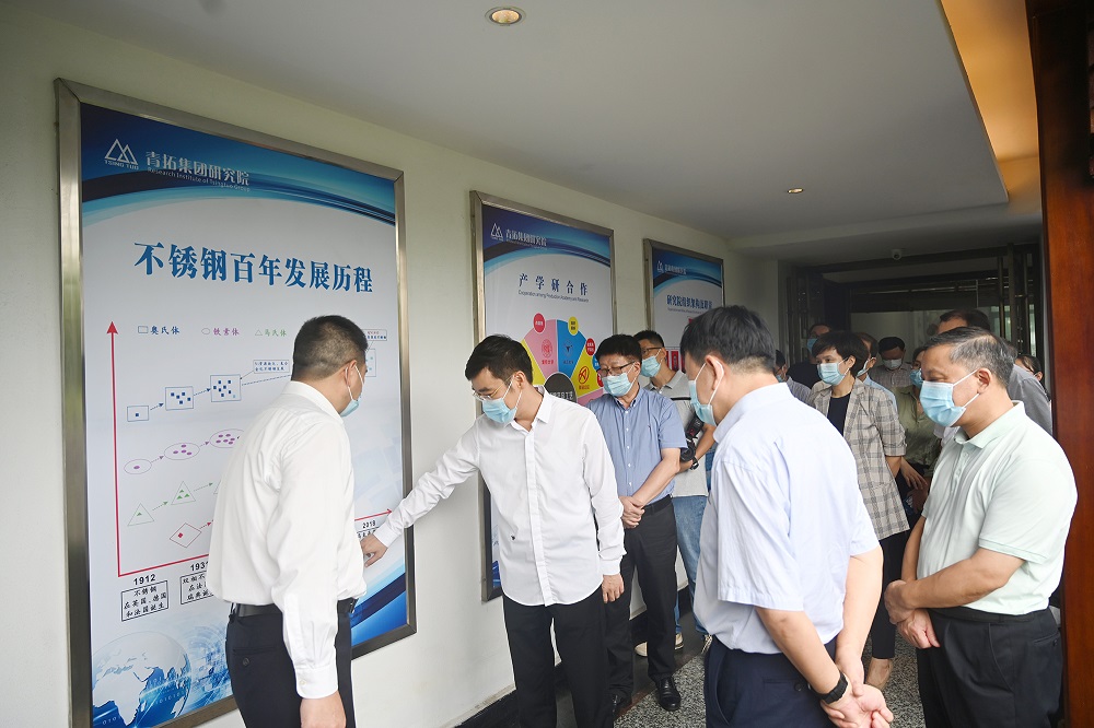 一行人员还参观了从不锈钢原材料,到不锈钢钢坯、棒线材、板材的不锈钢产成品,现场试用以青拓笔尖钢生产的圆珠笔,近距离体验手撕钢,对红土矿和铬矿的冶炼开采、QN系列不锈钢新产品等产生浓厚兴趣,对开发的不锈钢家居新产品、青拓十年磨砺出千亿级的不锈钢之“剑”成果表达敬意,对青拓今后推进不锈钢全产业链高质量发展提出了必须确立以创新为关键抓手的新要求。梁建勇对不锈钢行业的发展如数家珍,对行业内的知名人物和福建钢铁发展的历史娓娓道来,令人耳目一新。