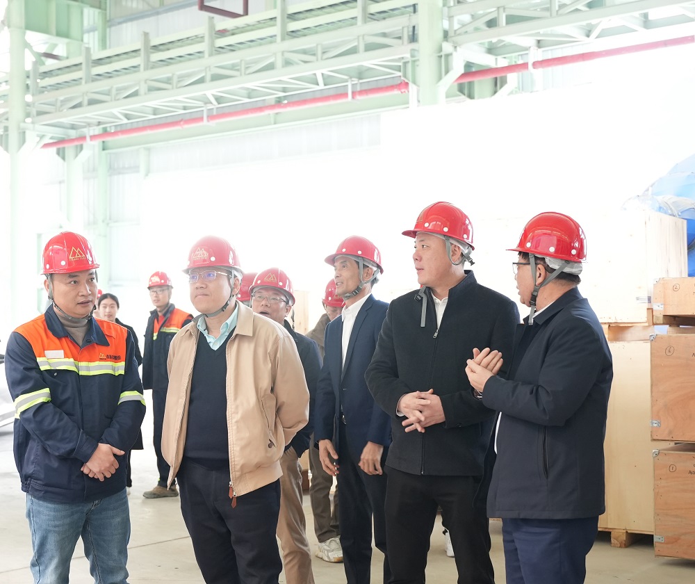 吴添富一行率先来到沙湾青拓新材料厂区,实地查看即将点火试产的高性能不锈钢新材料及配套项目(一期)。福建青拓实业股份有限公司总经理李学强对产能置换异地技改建设情况及设备运行流程进行了详细介绍,对领导提出的关于数字化、自动化、能耗标准、生产安全等问题作出全面解答。吴添富强调:安全责任重于泰山,企业务必高度重视安全生产,确保平稳有序推动项目建设。