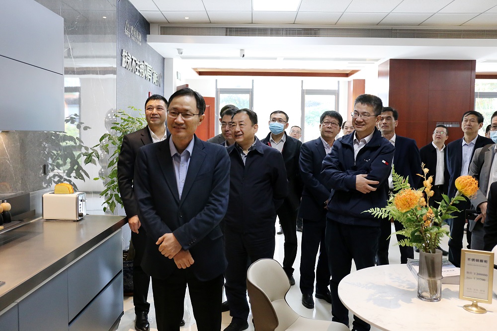 李萌一行依次参观了供销大厅、研究院、不锈钢家具展示厅等场所,通过认真倾听姜海洪等企业领导对集团不锈钢品种、不锈钢制造流程及企业创新举措等情况的详细汇报,对青拓集团的发展历程和相关产品及青拓集团在不锈钢行业中的作用地位有了全面的了解。在青拓研究院,李萌重点听取了研究院组织架构和产学研结合及成果转化等情况的介绍。在家具展厅,众多集科技、实用与新潮于一体的现代化不锈钢智能家居产品,让人耳目一新,李萌指出:不锈钢家居的出现是不锈钢产品在应用功能上的思路拓展,充分体现了不锈钢产品具有高附加值、高技术含量的属性,满足了人民群众高品质生活需求。