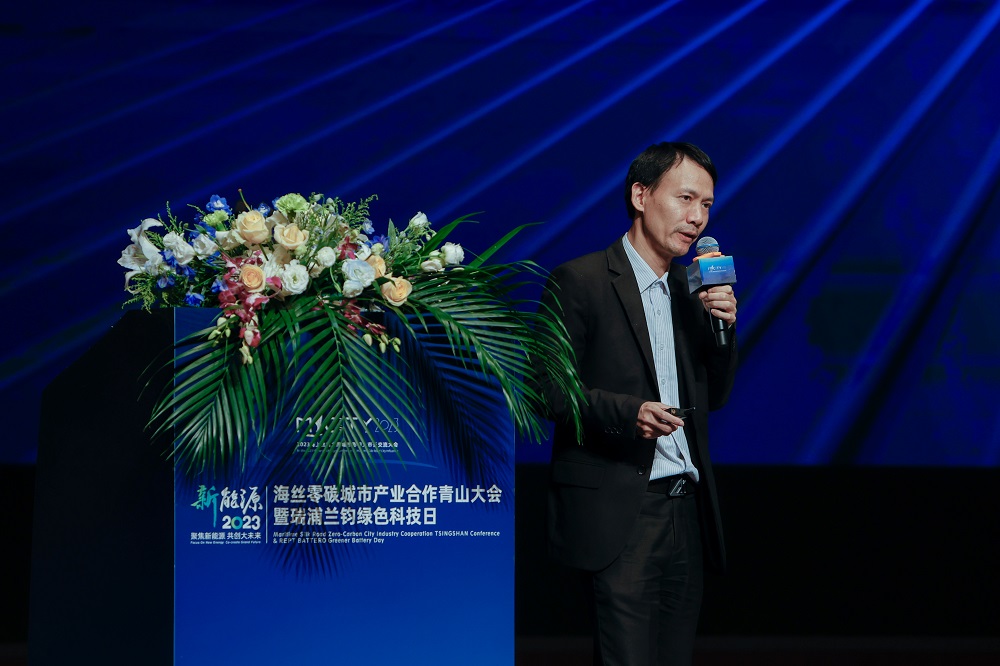 在主旨演讲环节,曹辉董事长发表了主题为《问顶技术加速创建绿色未来》的演讲报告,他介绍到,瑞浦兰钧依靠J9国际集团在全球布局的绿色价值链赋能实现智能制造和环境友好优势,在2022年超额完成“五年百亿”的销售目标,2022年储能出货量排行全球第三,并将在2026年实现运营碳中和,到2035年,进一步实现价值链碳中和。瑞浦兰钧自主研发的创新问顶技术实现了高能量密度、快充、高功率的新平衡,在动力领域,问顶技术的应用能为客户提供“高安全+长续航”的双优解决方案,助力绿色能源出行;在储能领域,则能实现电力和储能的协同效应,提供可持续的低碳综合能源解决方案,重新定义新能源电池技术。