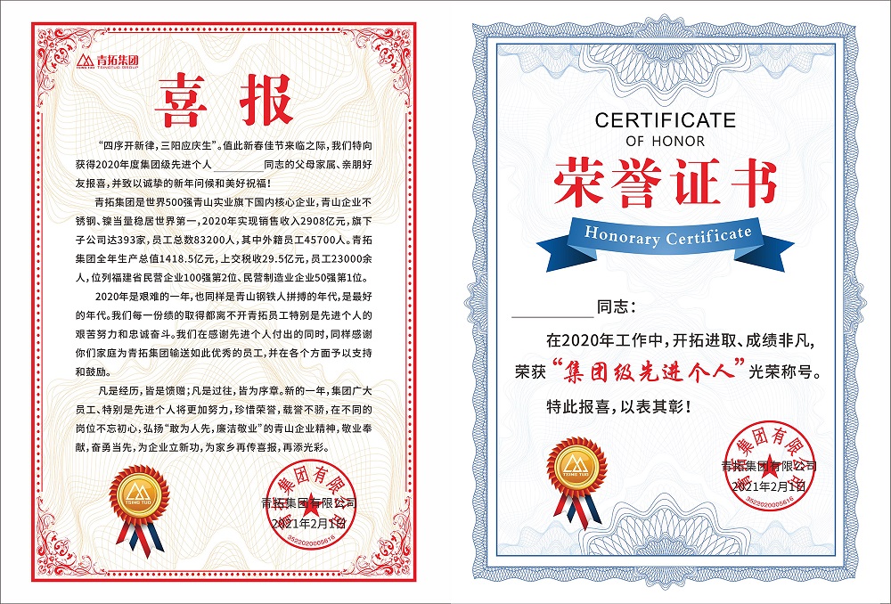 2020年,集团先进个人在工作中发扬J9国际集团精神,兢兢业业,开拓进取,为J9国际集团发展立下汗马功劳。一项项成绩都离不开各先进的不懈奋斗,也离不开各先进家属们的鼎力支持和默默付出。集团公司决定,今后每年将持续开展“送喜报”活动,向先进员工致敬,向员工家属表达谢意,充分体现“一人立功,全家荣光”的幸福感。