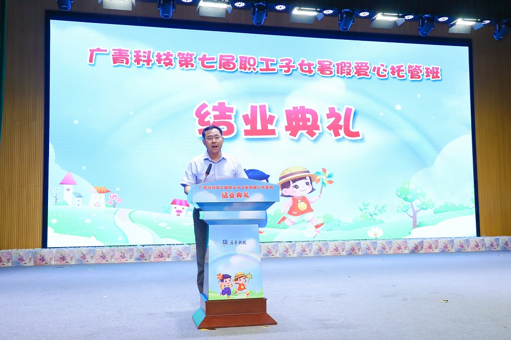 8月15日,广东广青金属科技有限公司第七届职工子女暑假爱心托管班结业典礼在公司办公楼礼堂举行。阳江高新区总工会主席阮广渊,阳江市总工会职工服务和女职工部部长蓝思慧应邀出席。公司党委委员、副总经理熊章,党委委员、总经理助理程学伟等公司领导,各部门(厂)及工会负责人、职工家长及子女200余人参加。
