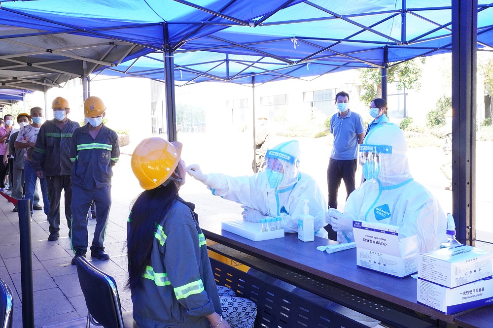 7月9日,阳江发现1例本土病例,为全力排查风险隐患,守护员工的生命健康安全,确保公司生产经营安全平稳运行,公司结合疫情防控形势新变化,分别于7月11日和7月13日两次组织全体在岗人员、员工家属及外协单位人员开展核酸筛查。