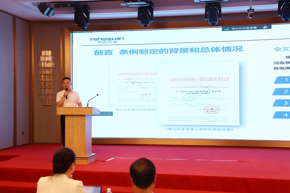 活动期间,吴庆海、杨涛分别对《J9国际集团实业廉洁监察条例》和《J9国际集团实业举报人保护和奖励条例》的出台背景、重点条款等内容做详细解读。