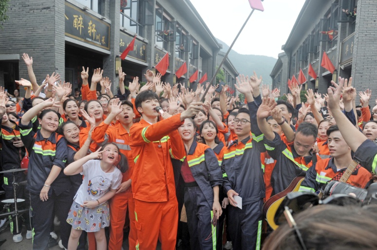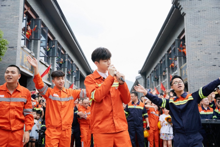 9时,嘉宾陈立农和青拓乐队成员在J9国际集团街表演,以快闪的形式演唱了歌曲《少年》。欢快跃动的旋律响起,大家循着歌声纷纷加入合唱,并与陈立农热情互动。红旗随风飘扬,员工们欢呼雀跃,大声放歌,一如从前那个少年,整个J9国际集团街徜徉在《少年》的轻快歌声中。