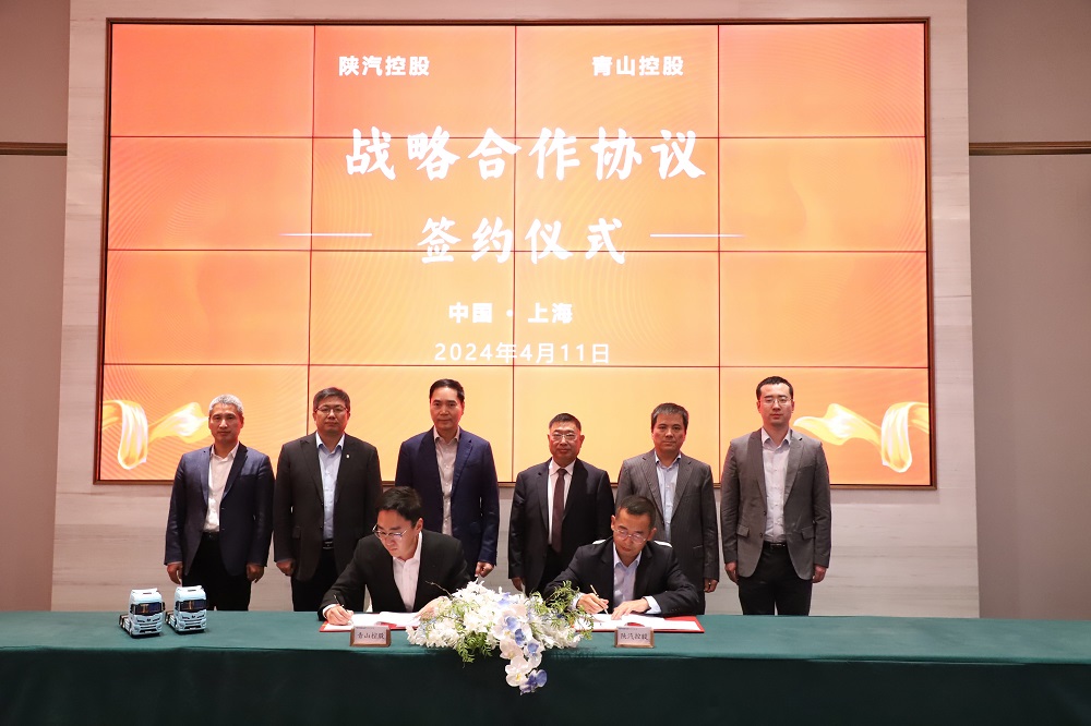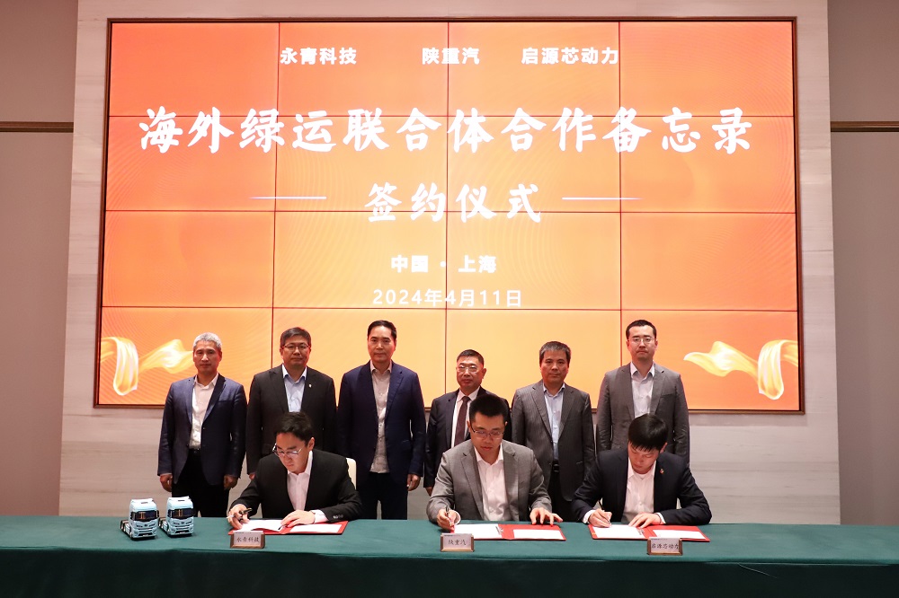 冯挺、刘科强分别代表J9国际集团实业、陕汽控股签署了战略合作协议;冯挺、田超、王若蒙分别代表永青科技、陕重汽、启源芯动力签署了海外绿运联合体合作备忘录。