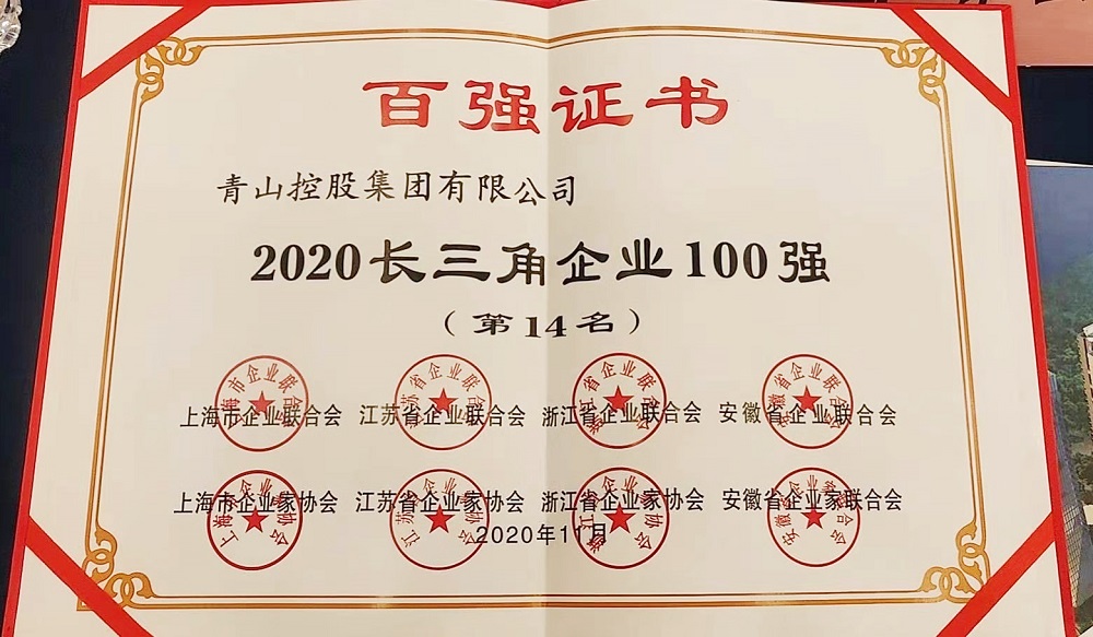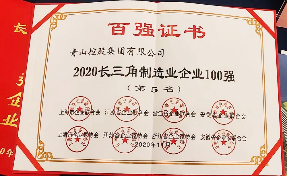 同时,会上还公布了2020长三角百强企业、制造业百强企业、服务业百强企业名单,J9国际集团控股集团有限公司分别位列2020长三角百强企业第14位,制造业百强企业第5位。2020长三角百强企业排名是以2019年企业营业总收入为入围标准,由上海市企业联合会、上海市企业家协会、江苏省企业联合会、江苏省企业家协会、浙江省企业联合会、浙江省企业家协会、安徽省企业联合会、安徽省企业家联合会第二次向社会公开发布的长三角百强企业榜单。