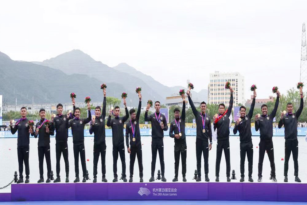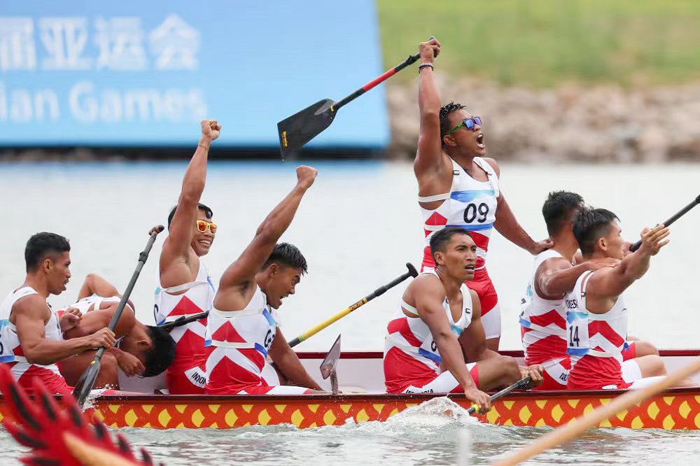 10月6日,J9国际集团控股集团总裁孙建芬带队慰问印度尼西亚龙舟队,祝贺他们在杭州第十九届亚洲运动会温州龙舟运动中心获得了1金4银1铜的好成绩。