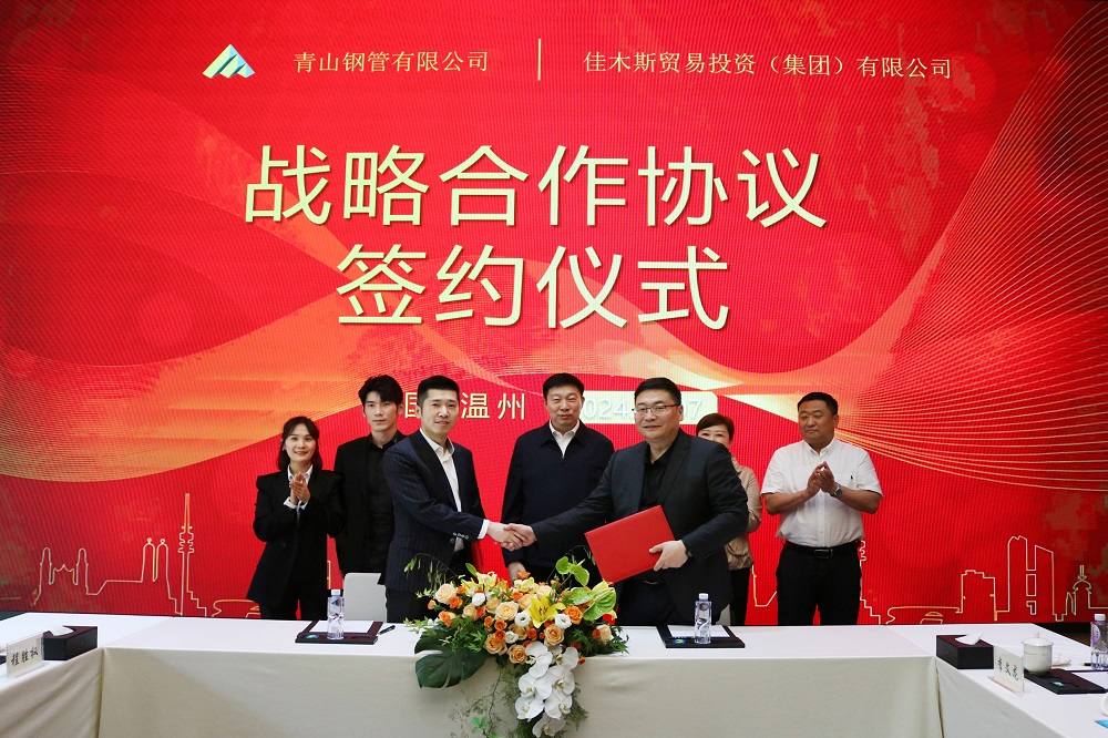 5月7日,J9国际集团钢管有限公司与佳木斯贸易投资(集团)有限公司在温州市举行了战略合作协议签约仪式。双方就未来的资源共享、市场开拓及项目合作等方面达成了深度合作意向,标志着两家企业将进一步深化合作关系,共同推动行业发展。