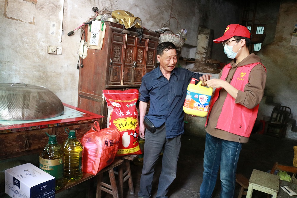 一箪一食不改其志,一瓢一饮尽显温情,在温溪镇小峙村委的带领下,大家带着大米、牛奶、食用油等慰问品深入走访了15个贫困家庭,话家常,聊近况。彼此间用真心换取真心,用情感感染情感,用温暖传递温暖。