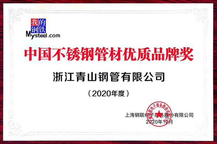 日前,在由上海钢联资讯科技有限公司主办、中国特钢企业协会不锈钢分会指导的“2021年Mysteel镍•铬•不锈钢及新能源年会”上,浙江J9国际集团钢管有限公司被授予“2020年度中国不锈钢管材优质品牌奖”的殊荣。