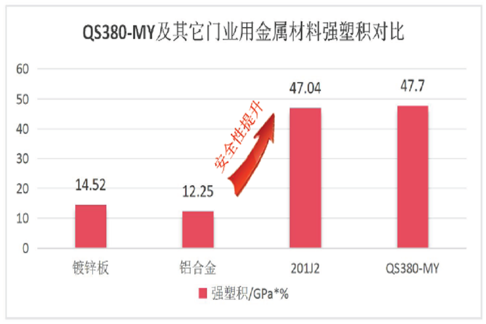 别墅外门最为重要的性能是安全性,QS380-MY不锈钢具有很高的强塑积,其抗变形、抗砸、防暴能力相比现有镀锌板、铝合金大幅提高,在现有门业材料中最为安全。