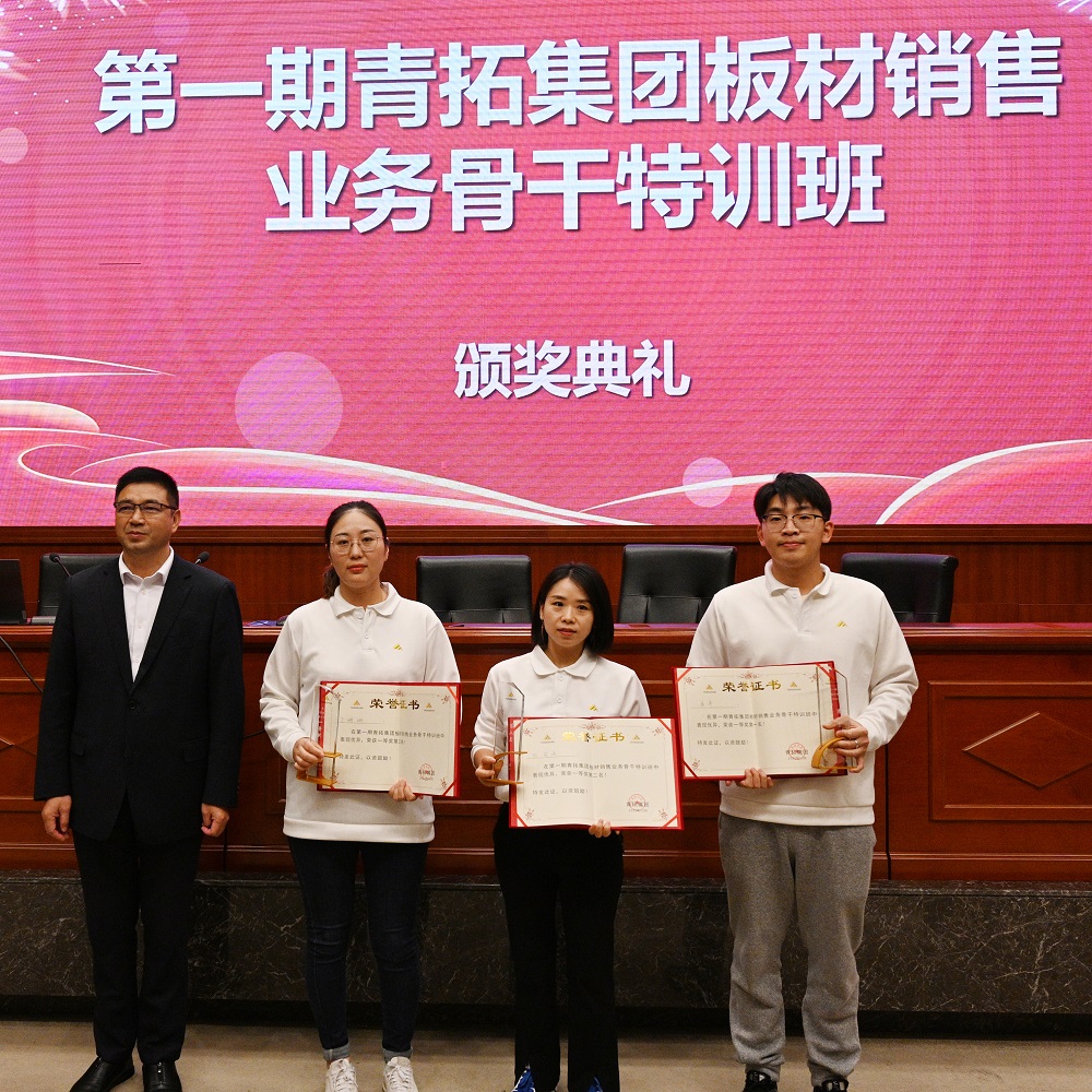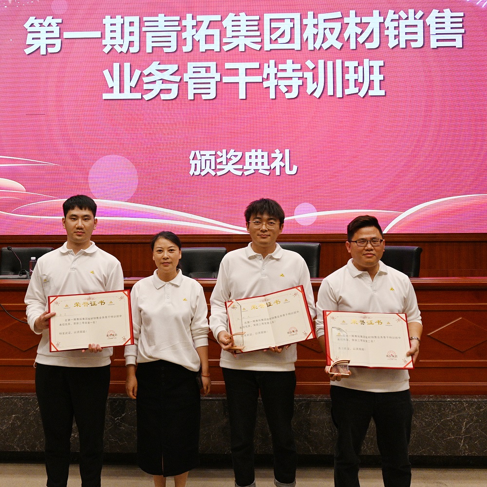 最后,根据综合考核成绩,由青拓集团党委书记、行政总经理钟盛江,甬金股份技术中心总经理诸葛建强,吉瑞公司渠道管理部部长成静为本次取得优异成绩的学员进行颁奖。第一期“青拓板材销售业务骨干特训班”在大家热烈的掌声中圆满落幕。