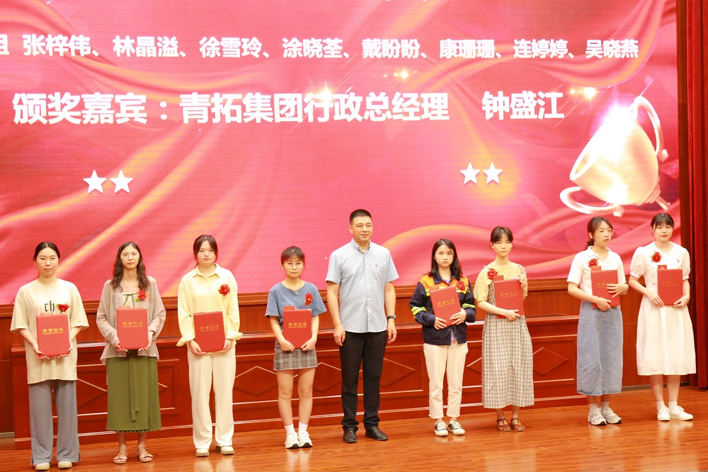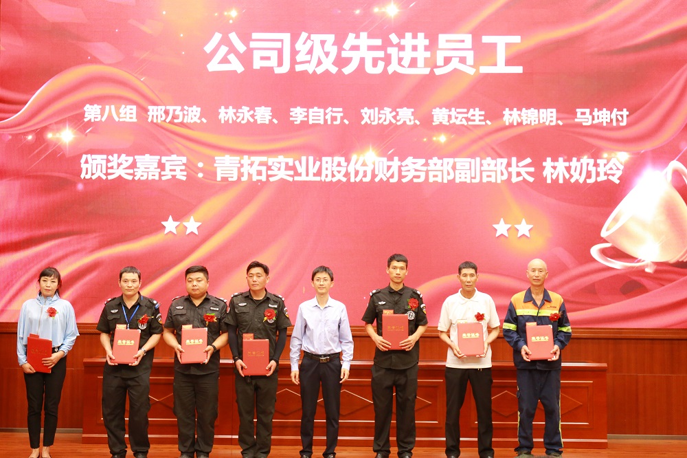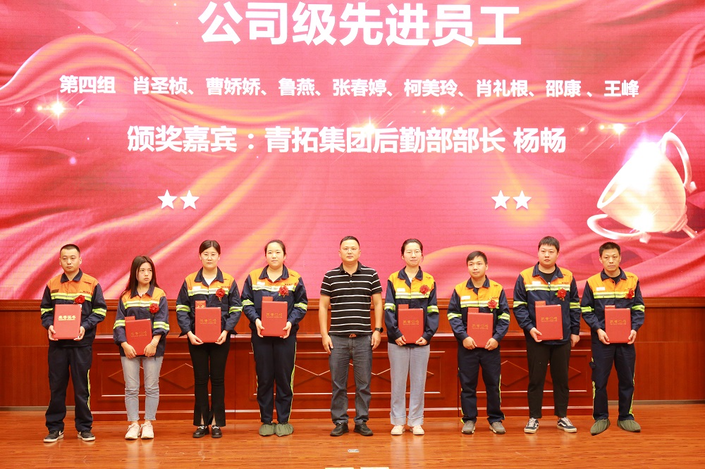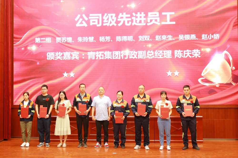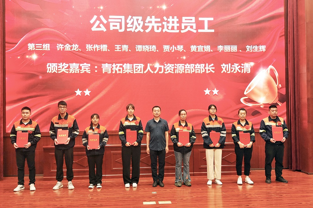 各位领导依次上台为先进员工颁奖并合影留念,希望受到表彰的先进个人继续保持谦虚谨慎、戒骄戒躁的精神,再接再厉,再创佳绩,同时希望全体员工以先进为楷模,积极探索,勇于创新,扎实工作,埋头苦干,不计得失,为青拓集团早日实现五年战略目标而奋斗。