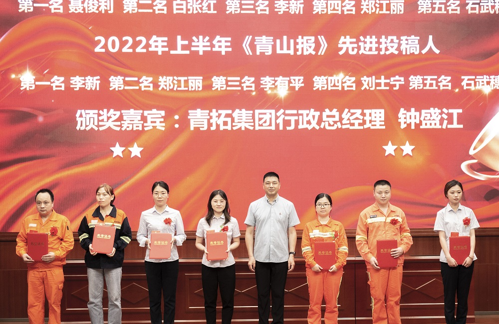 为表彰先进,进一步调动广大员工的积极性,7月25日下午,青拓集团有限公司2022年上半年总结暨先进表彰大会在报告厅举行,青拓集团行政总经理钟盛江、副总经理陈庆荣及各直属部门部长级领导出席,80余名先进员工参加此次会议。