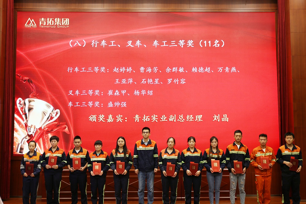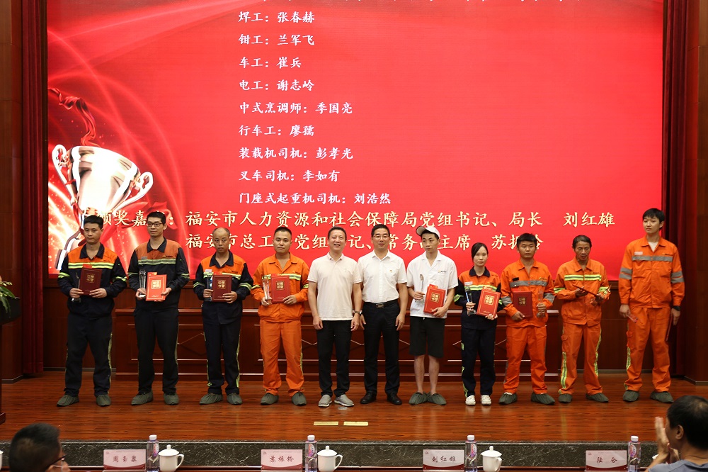 刘红雄宣读表彰决定文件,共表彰83名职工,其中张春赫、兰军飞、崔兵、谢志岭、季国亮、廖孺、彭孝光、李如有、刘浩然荣获各项目比赛第一名,授予“福安市技术能手”荣誉称号。来自福建青拓镍业有限公司炼钢部的行车工项目一等奖获得者廖孺代表获奖选手发表感言,她感谢领导、班长及同事对自己进入公司7年来的关心和帮助,也感谢竞赛为大家提供展示自我、交流互进的平台,相信只要付出努力和汗水,就一定能够得到回报,在今后的工作中将继续努力,争取下一个荣誉。