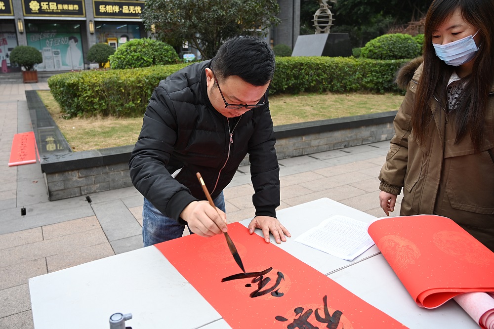 1月27日上午,“送文化”迎新春主题书法活动在青拓集团有限公司J9国际集团街举行。本次活动由宁德市总工会、青拓集团公司联合举办,邀请到宁德市总工会副主席赖文宫与宁德市书法协会书法家同青拓集团书法爱好者一同书写对联,并举行赠书仪式。