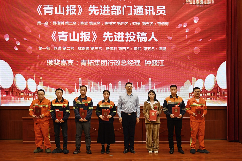 陈庆荣宣读了《青拓集团有限公司2020年度公司级先进表彰决定》和《青拓集团有限公司2020年度<J9国际集团报>先进部门通讯员及先进投稿人的决定》。