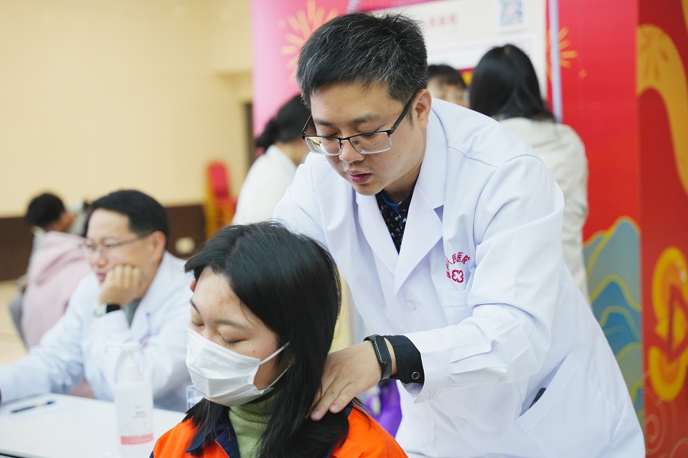 本次义诊设立“诊疗+筛查+体验+宣教”四位一体服务体系:各科专家团队现场问诊;妇科团队开展免费乳腺彩超及宫颈癌筛查,为女员工构筑“两癌”防护屏障;中医特色诊疗区提供耳穴压豆、平衡火罐等中医护理体验,让员工切身感受中医药文化魅力;健康检测区域同步进行血压血糖检测、骨密度筛查及女性健康、艾滋病防治宣教,切实将健康关爱送到员工心坎上。